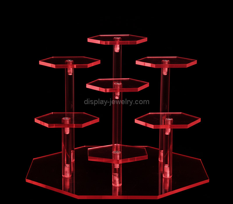 Custom translucent red acrylic 7-tier jewellery display plates feature a vibrant crystal-clear finish that highlights rings, earrings, necklaces, and bracelets beautifully. Durable and lightweight acrylic construction ensures stability, while the tiered design maximizes vertical space, creating an elegant, eye-catching presentation for retail stores, exhibitions, craft fairs, or stylish home organization.