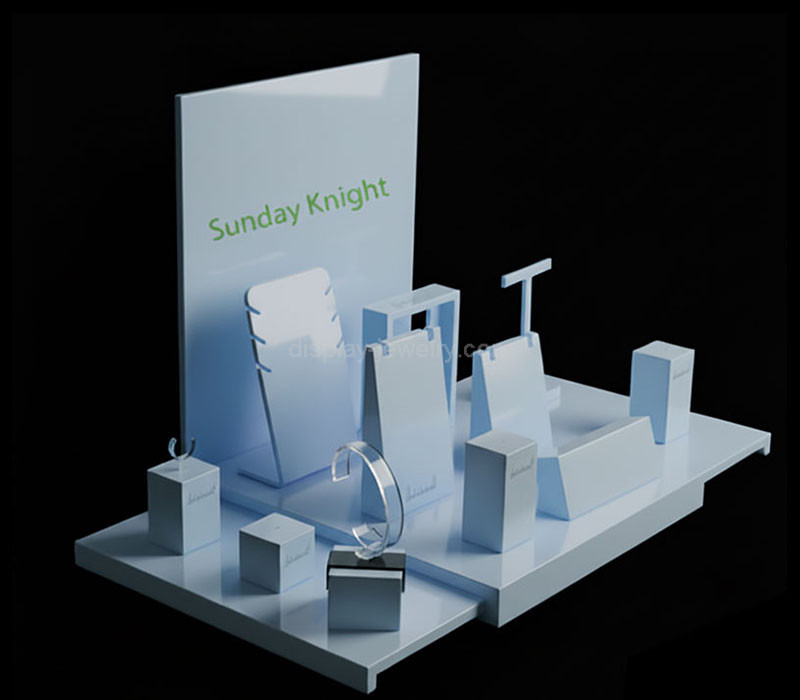 Custom blue acrylic boutiques retail shops jewelry set display prop – designed to showcase necklaces, earrings, and bracelets with elegance and durability. Perfect for boutiques, retail shops, and exhibitions. All fees included—taxes, duties, and shipping—so you simply receive your order, hassle-free and ready to use.