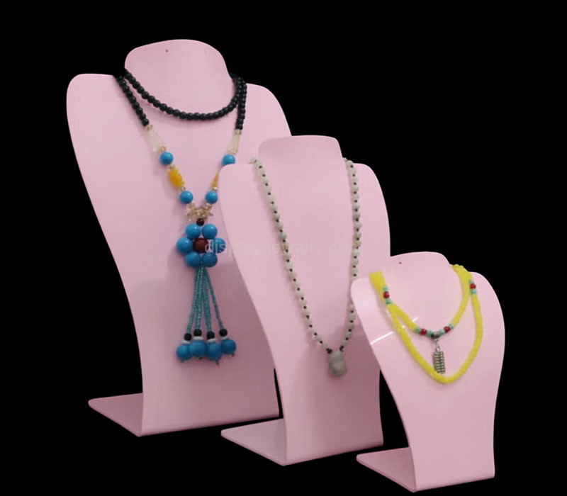 Custom pink acrylic neckform necklace display stands designed for exhibitions, retail showcases, or personal collections. Crafted with durability and style to highlight jewelry beautifully. Enjoy all-in door-to-door delivery with no hidden fees—taxes, duties, and shipping are fully covered, providing you a seamless and worry-free purchasing experience from start to finish.