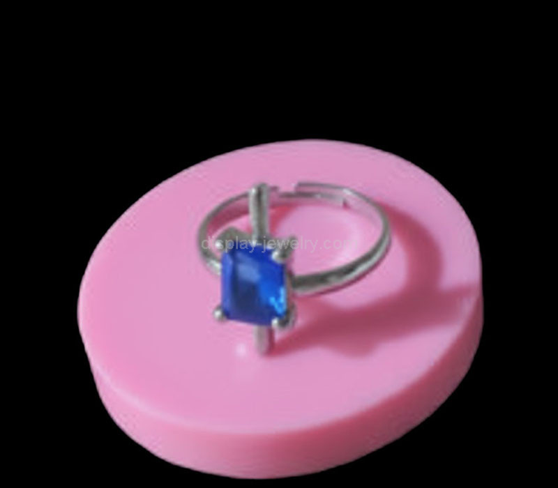Custom pink acrylic round display block, designed to showcase rings with a modern, stylish touch. Ideal for exhibitions, retail stores, or personal collections, its smooth finish and vibrant color enhance jewelry presentation. Delivered tax-free straight to your door, offering a seamless, stress-free, and reliable shopping and shipping experience.