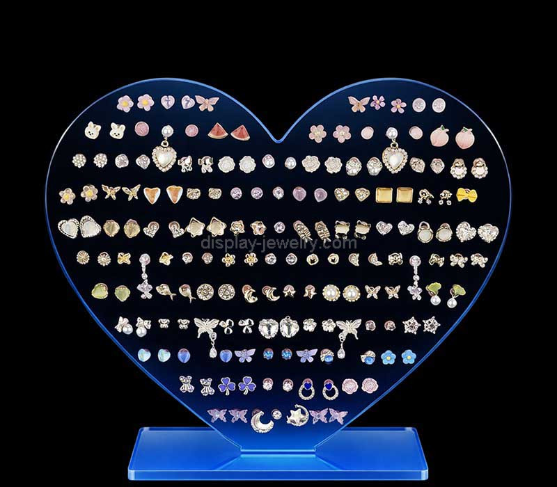 Elevate your retail presentation with our custom acrylic heart-shaped earring holder stands. These charming, durable displays are fully customizable in color and shape to fit your brand. Perfect for boutiques and showrooms. Available for wholesale only at bulk rates.