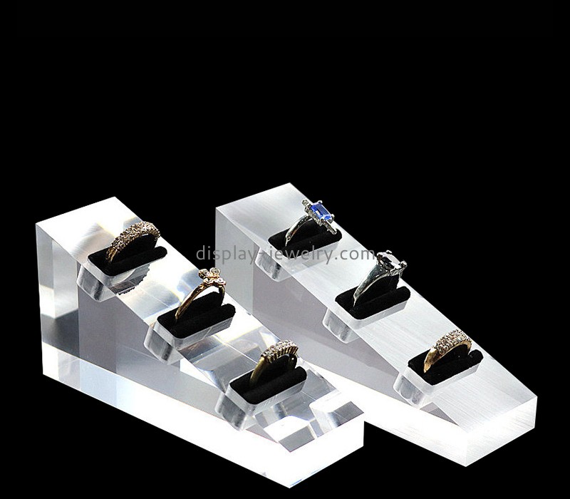 Introducing our Custom Clear Acrylic Jewelry Ring Display Block – a pristine and sophisticated solution for retail shops showcasing exquisite rings. Meticulously crafted, this transparent block offers an unobtrusive yet captivating platform, allowing the brilliance of each ring to take center stage. F