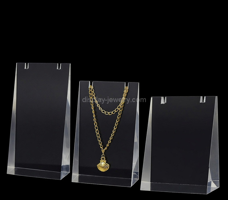 Custom acrylic necklace stand in an elegant A-shape design, crafted from durable, high-clarity acrylic for a clean and modern appearance. The stable structure neatly displays necklaces, chains, and pendants while preventing tangling. Ideal for jewelry stores, retail showcases, exhibitions, or personal collections, providing a stylish and practical display solution. ✨