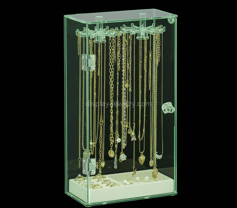 Custom translucent green acrylic rotatable necklace display box designed to showcase your jewelry with clarity and style. The smooth-turning base allows easy viewing from every angle, while the vibrant green finish adds a modern touch. Durable, elegant, and functional. Worry-free shipping with no hidden charges to the US, Europe, and Asia.