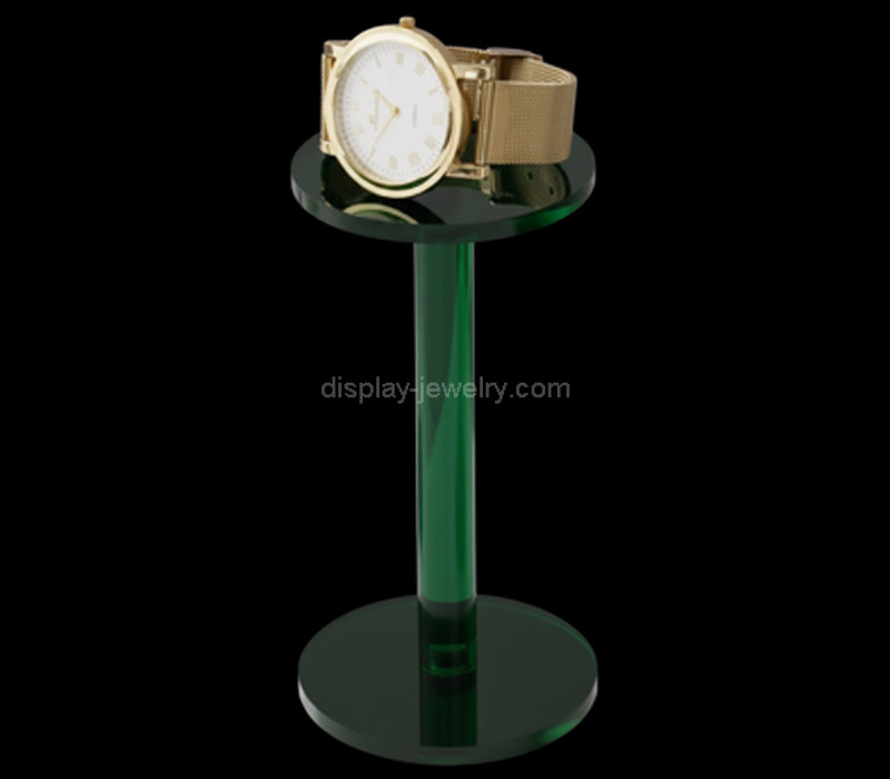 This custom translucent green acrylic round pedestal watches display riser stand adds a fresh, modern touch to watch presentations. Crafted from premium acrylic, it offers smooth edges, strong stability, and eye-catching transparency. Ideal for retail displays, exhibitions, and brand promotions, with customizable sizes and finishes available.