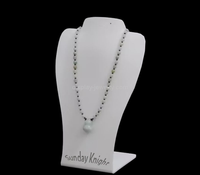 Custom white acrylic shops neckform necklaces display stand – sleek and elegant, ideal for presenting jewelry in boutiques and retail shops. Wholesale only, crafted for professional displays. All-in door delivery with no fees ensures a seamless and cost-effective experience.