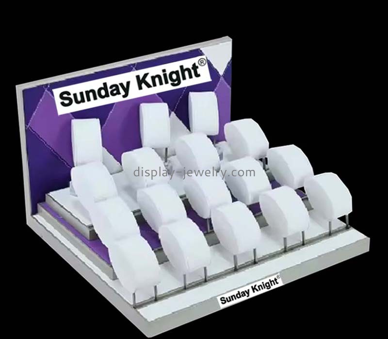 These custom wholesale grey acrylic jewelry watches display props feature a sleek and modern design, perfect for showcasing your finest timepieces and jewelry collections. Crafted from high-quality acrylic, these props offer durability and elegance.