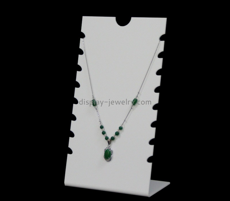 This custom white acrylic fashion necklace display rack is a chic and functional solution for showcasing your jewelry collection. Crafted from high-quality white acrylic, it offers a clean and contemporary aesthetic that complements the elegance of your necklaces.