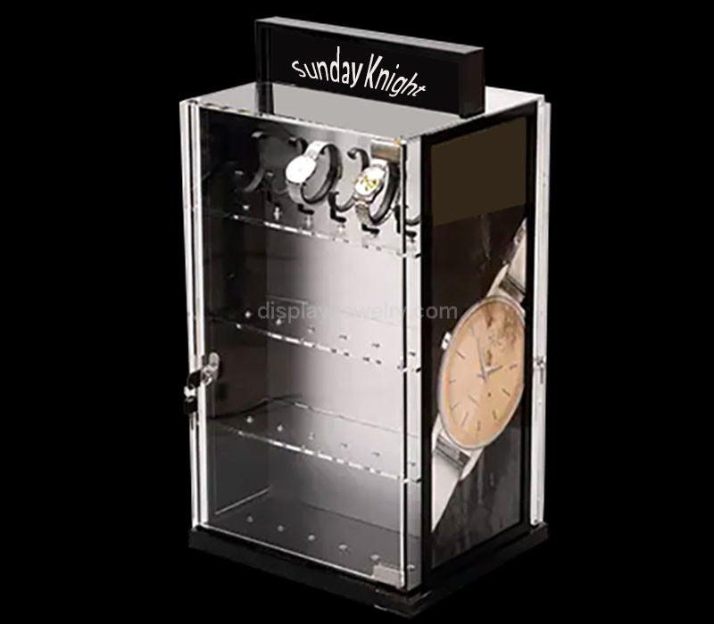 A secure, lockable acrylic display cabinet with four tiers, perfect for showcasing watches in wholesale or retail settings. This durable, customizable cabinet combines functionality with a sleek design, providing optimal product visibility and enhanced security for valuable items.
