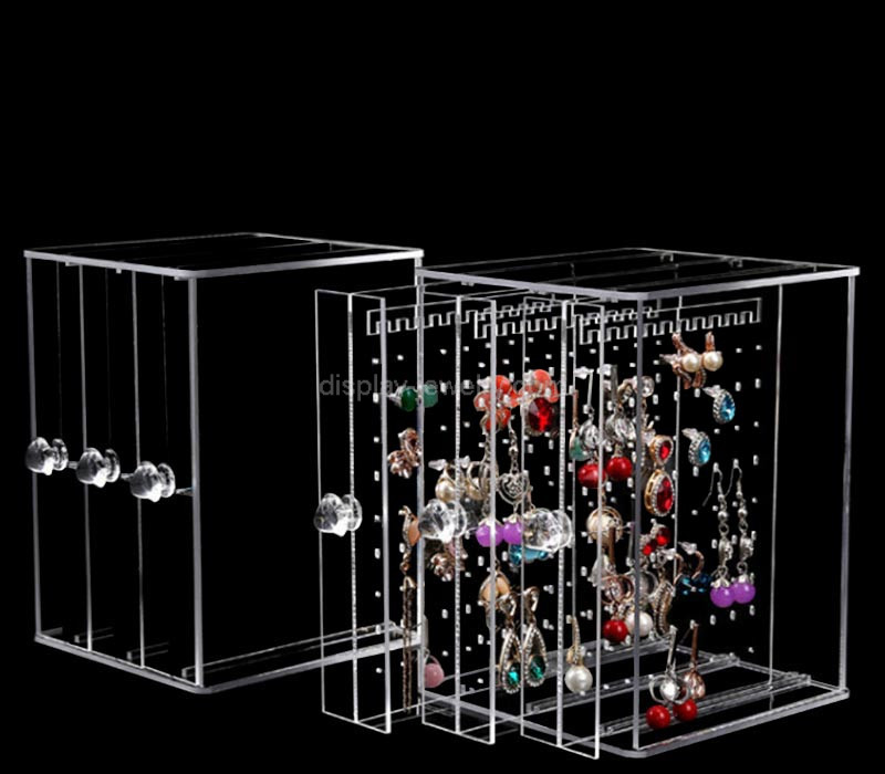 This wholesale custom acrylic earring storage rack offers a sleek, transparent design to organize and display earrings. Made from durable acrylic, it features multiple tiers or hooks, ideal for retailers or personal use, combining functionality with a modern, stylish aesthetic. Customizable options available.